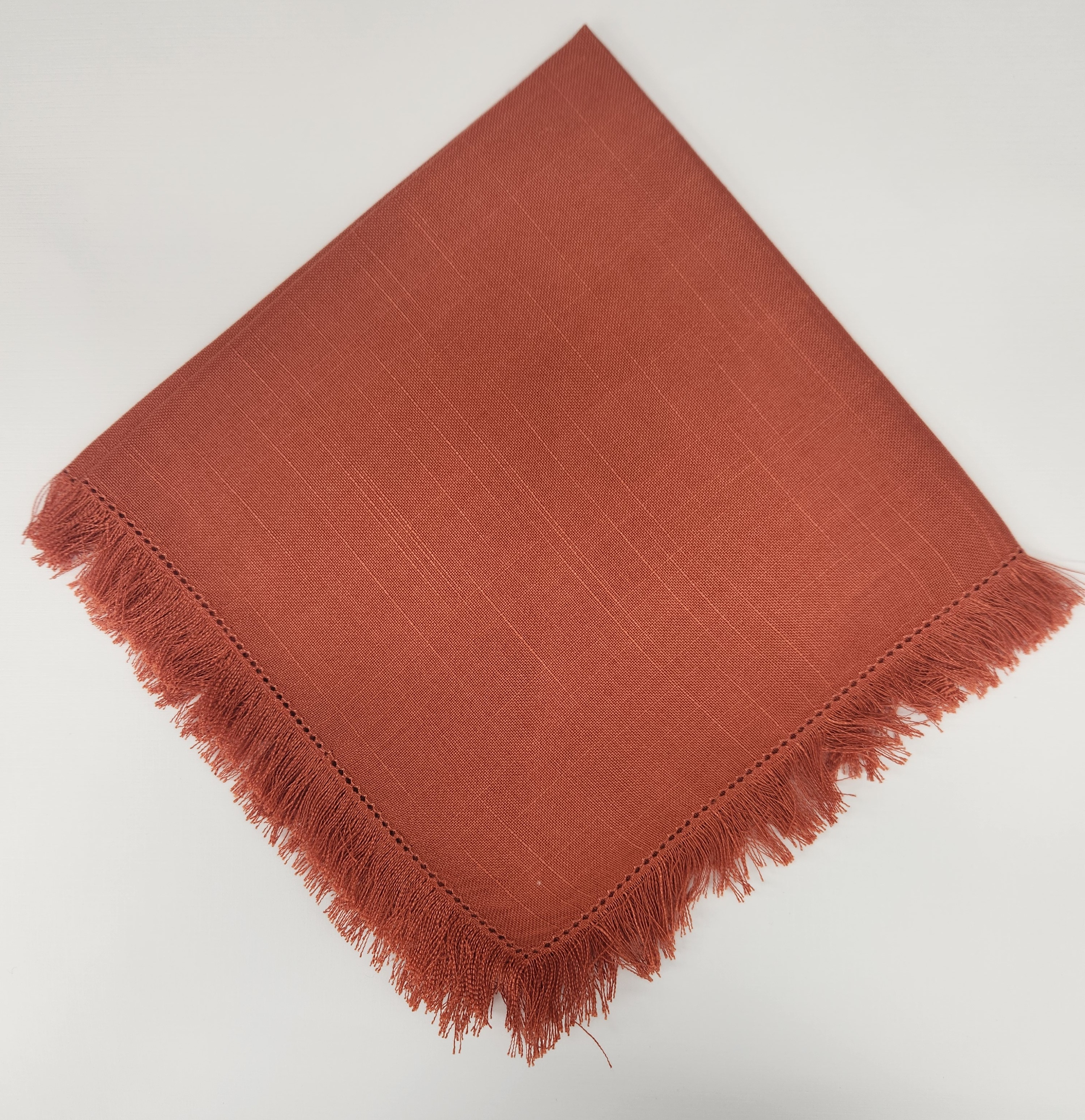 Dinner Napkin Hemstitch Fringe Terracota